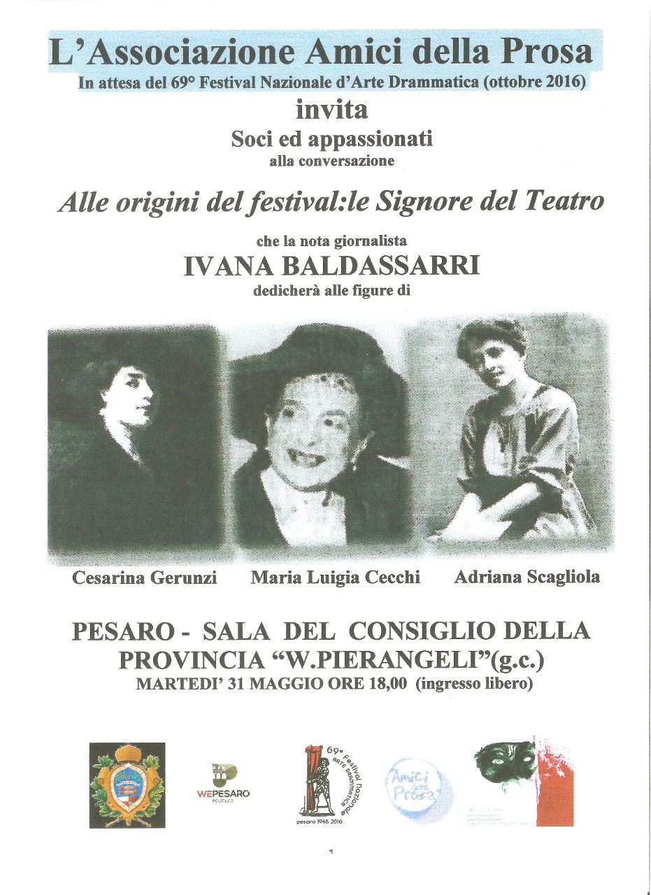 “Alle origini del Festival. Le Signore del Teatro” ; martedì 31.5 alle ore 18.00 presso la Sala del Consiglio Provinciale (g.c.) in Via Gramsci.